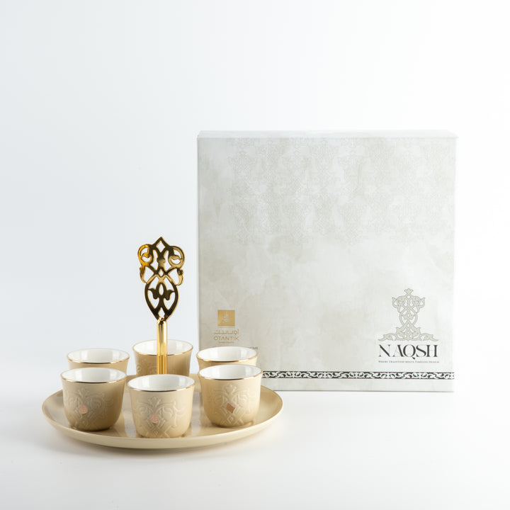 Arabic Coffee Set 7 Pcs From Naqsh - Ivory + Gold