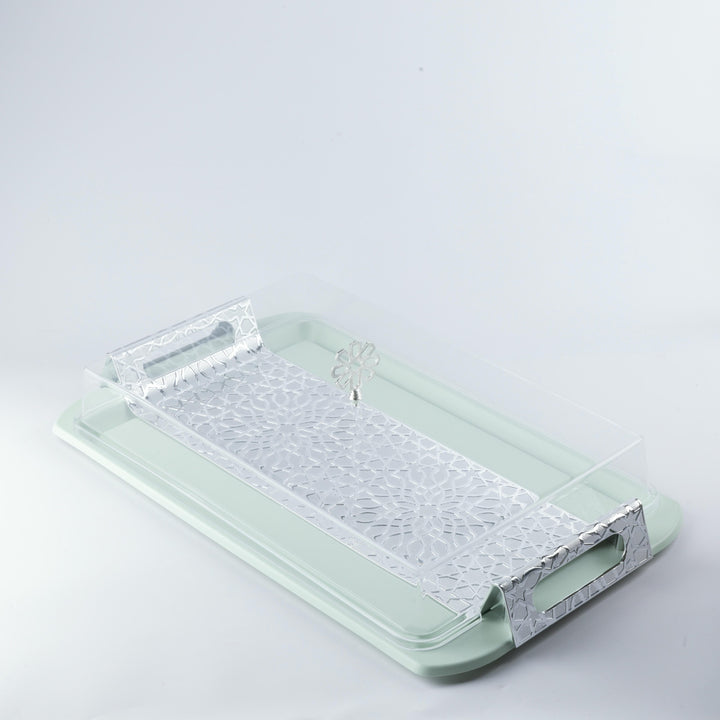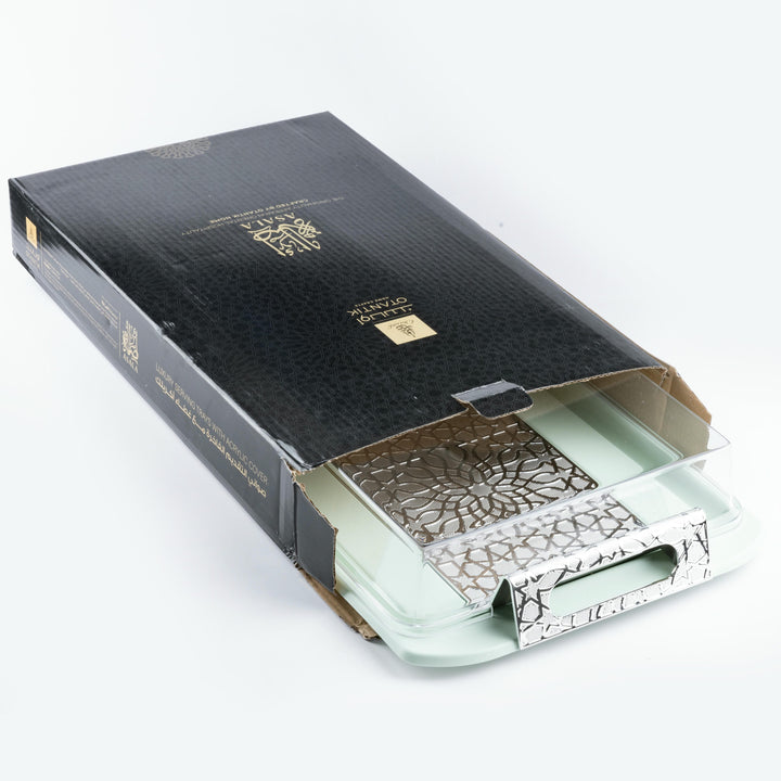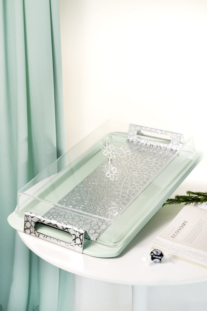 Luxury Iron Serving Tray With Acrylic Cover From Asalah - Teal + Silver