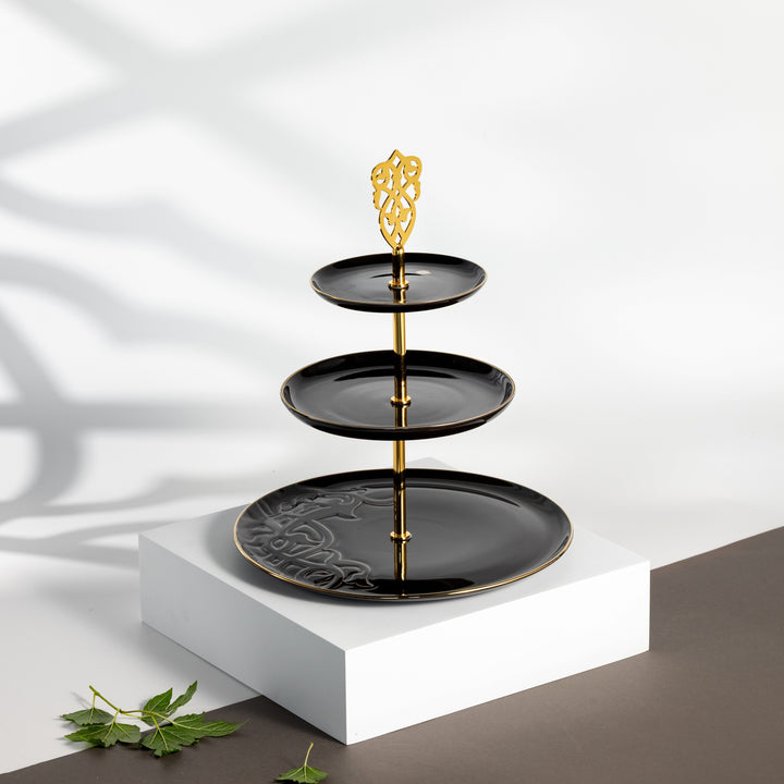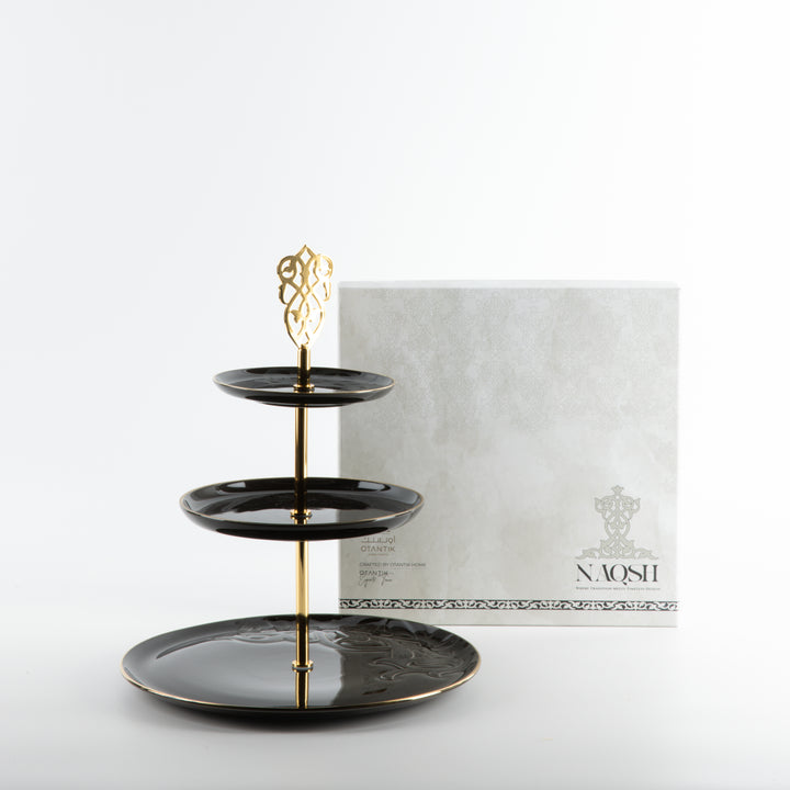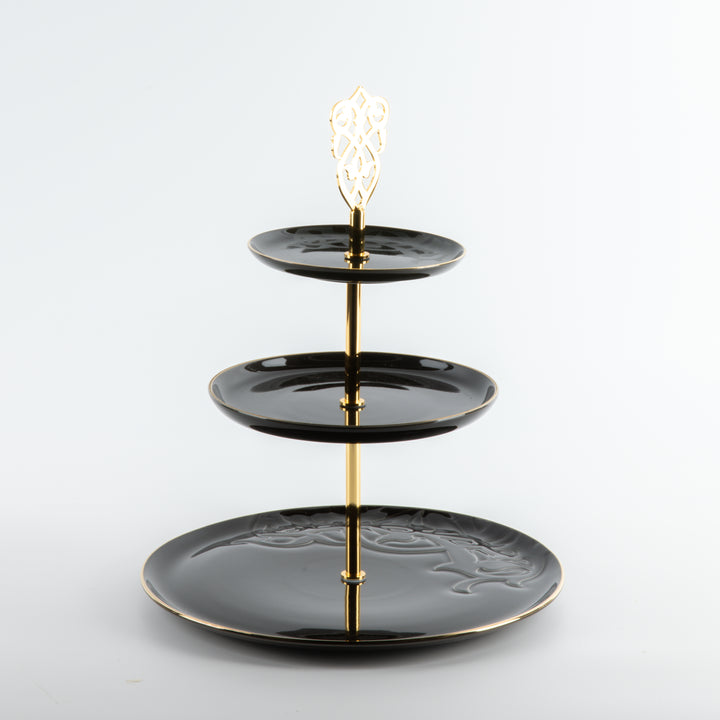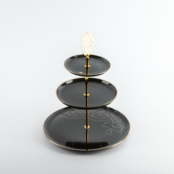 ستاند بورسلان 3 طبقات من نقش- أسود و ذهبي