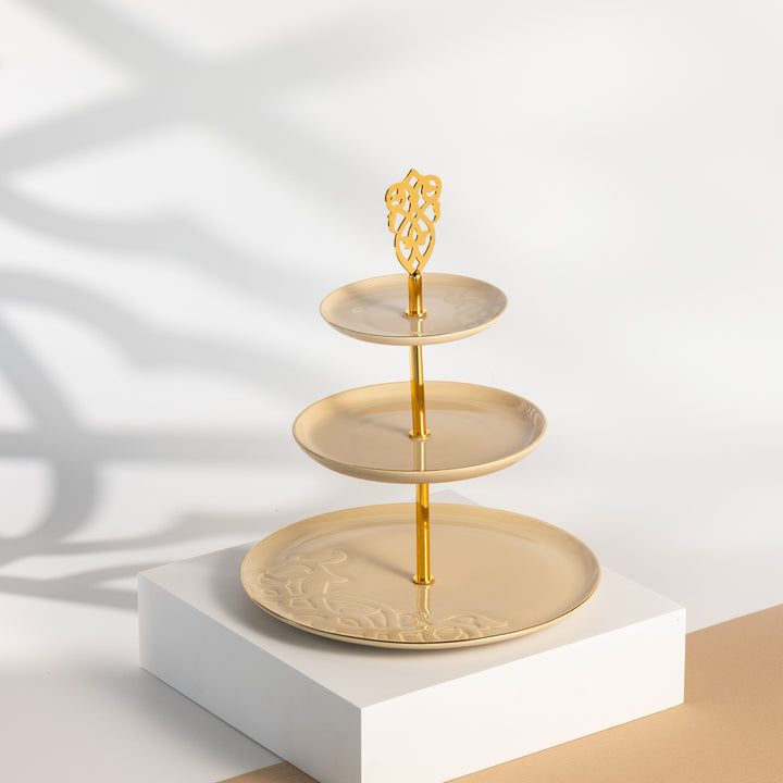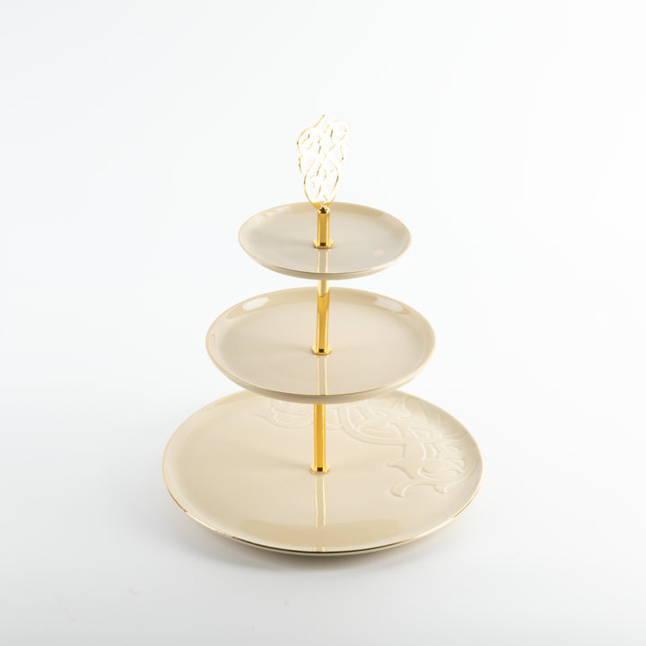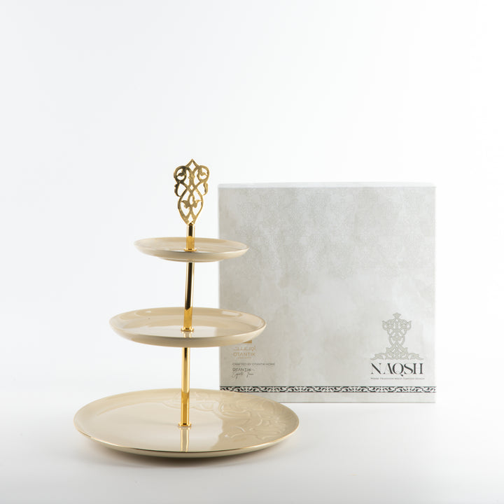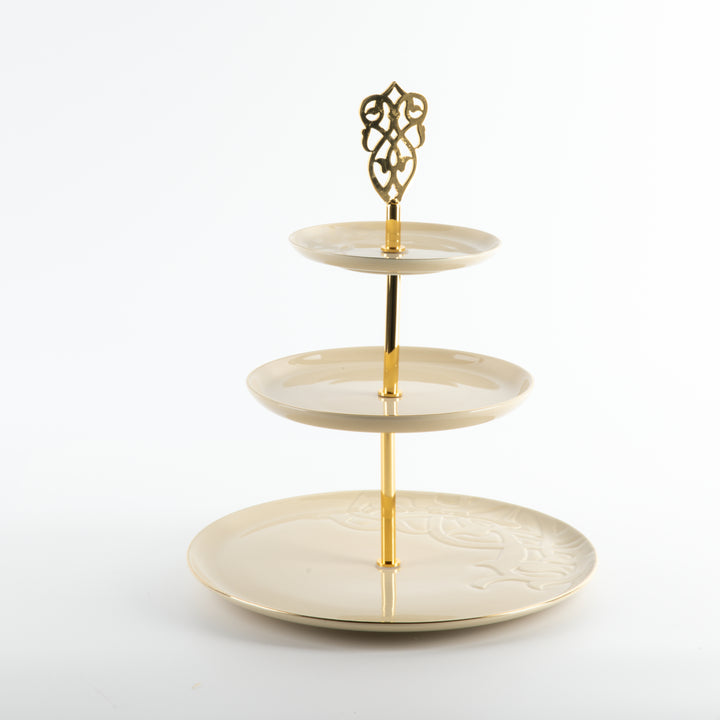 ستاند بورسلان 3 طبقات من نقش- إيفوري و ذهبي