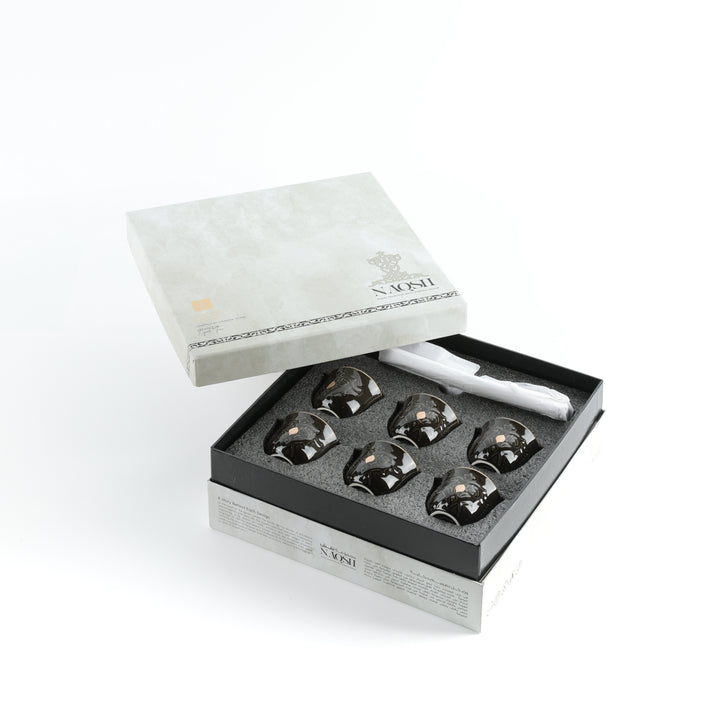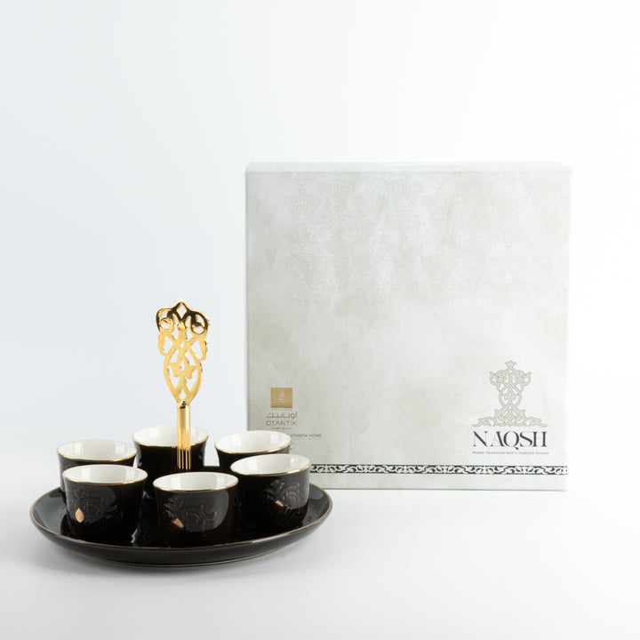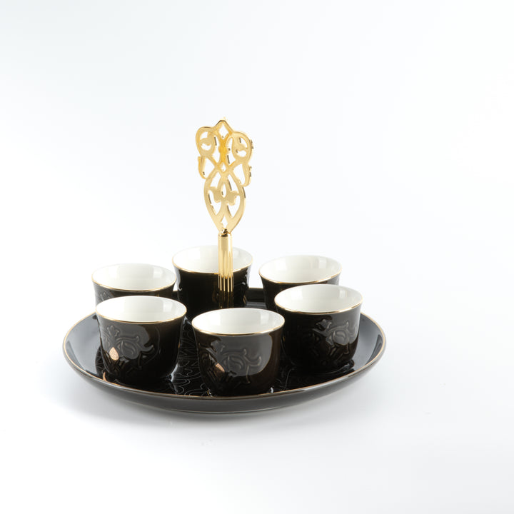 طقم قهوة عربية مع ستاند 7 قطع من نقش- أسود و ذهبي