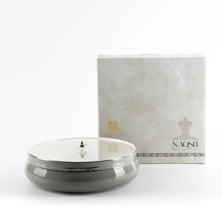 سر التميز في تقديم الحلويات والموالح , تمرية “نقش”، تبدو كل التقديمات كتحف فنية منظمة على مائدتك، تصميم أنيق يضفي لمسة من الفخامة والذوق الرفيع، وتعد من أكثر القطع مبيعًا عند اختيار الهدايا.