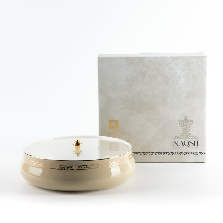 سر التميز في تقديم الحلويات والموالح , تمرية “نقش”، تبدو كل التقديمات كتحف فنية منظمة على مائدتك، تصميم أنيق يضفي لمسة من الفخامة والذوق الرفيع، وتعد من أكثر القطع مبيعًا عند اختيار الهدايا.
