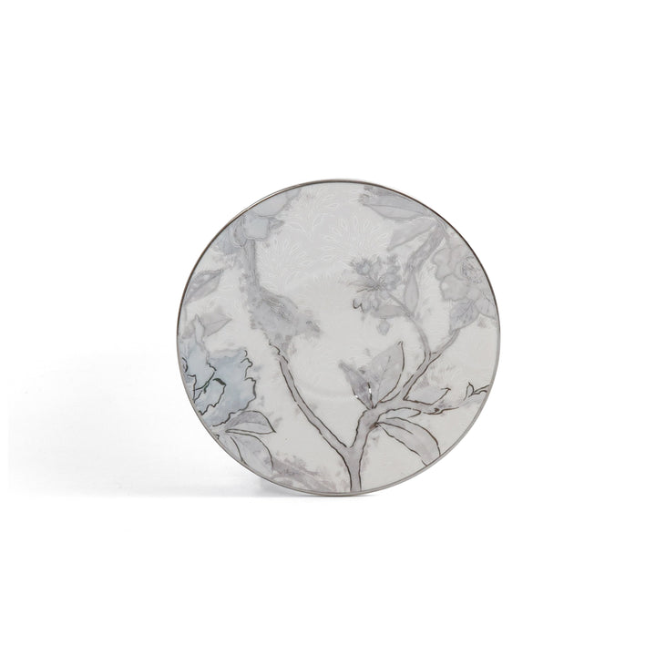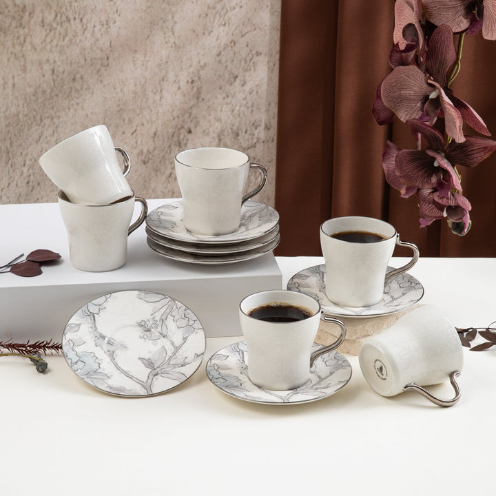 طقم أكواب شاي بورسلان 12 قطعة من خزامة - رمادي وفضي