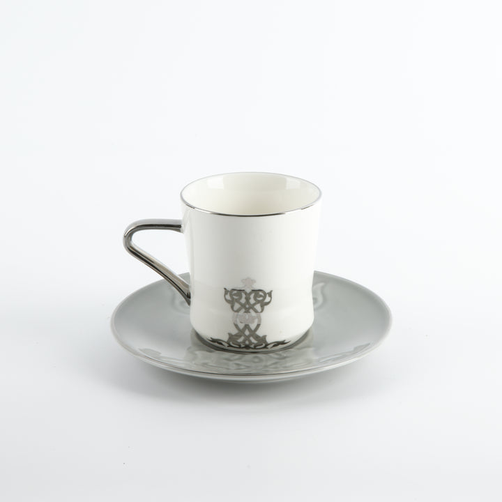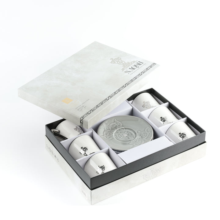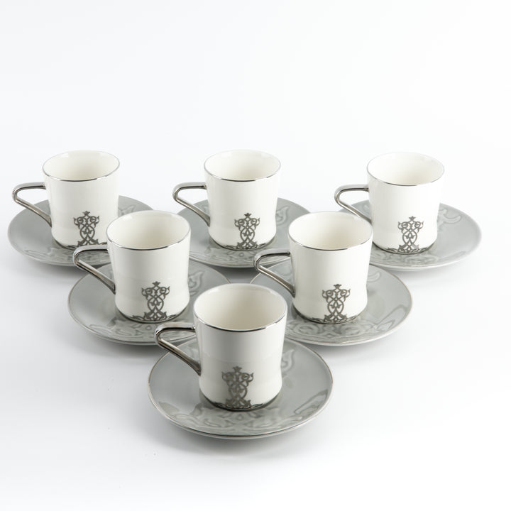 طقم أكواب الشاي 12 قطعة من نقش - رمادي و فضي