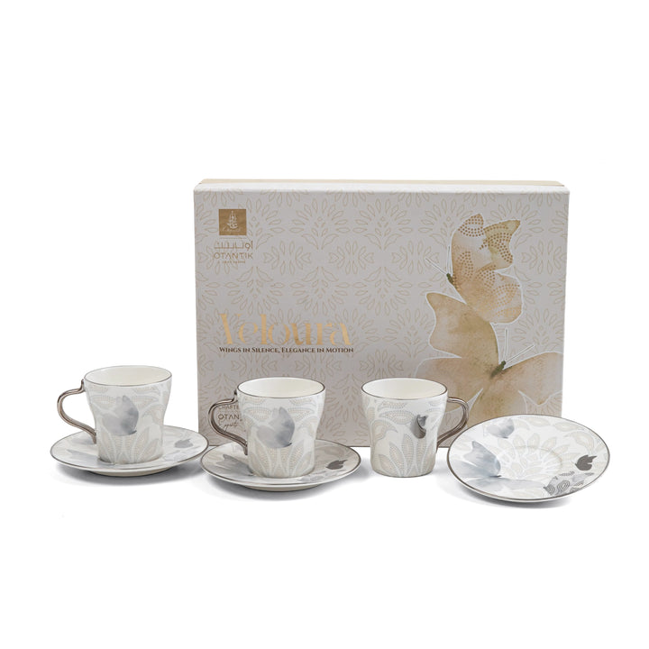 طقم أكواب شاي بورسلان 12 قطعة من فيلورا - رمادي وفضي