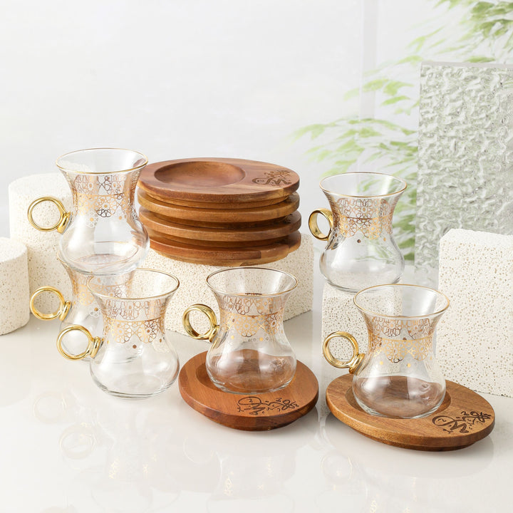 طقم الشاي مكون من 6 استكانات و 6 صحون خشب